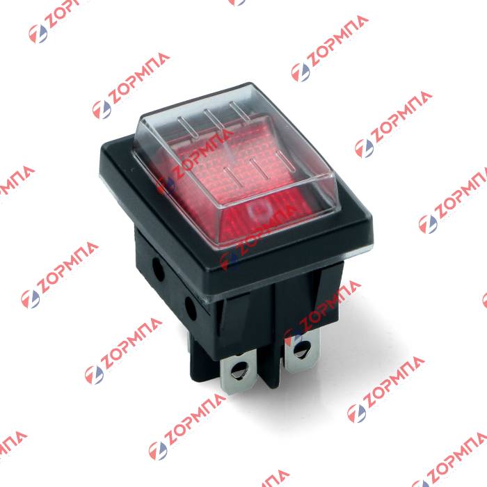 Διακόπτης ON-OFF I 16Α 4 επαφών με φως κόκκινος αδιάβροχος με κάλυμμα