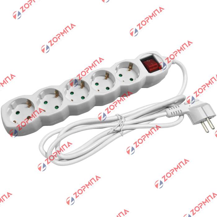 Πολύπριζο 5 θέσεων με διακόπτη 3x1,5mm^2 (1,5m καλώδιο) λευκό