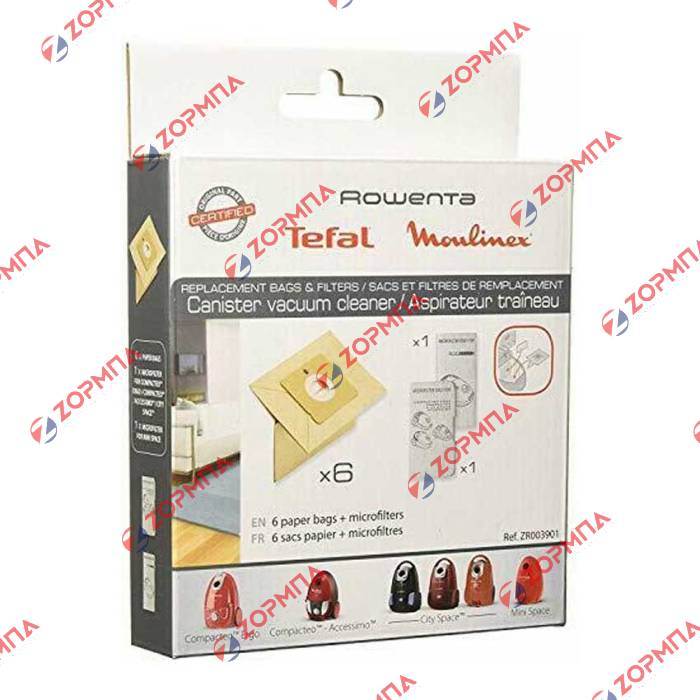 Σακούλες χάρτινες ηλεκτρικής σκούπας ROWENTA COMPACTEO, CITI SPACE, MINI SPACE / TEFAL COMPACTEO / MOULINEX Original ZR003901