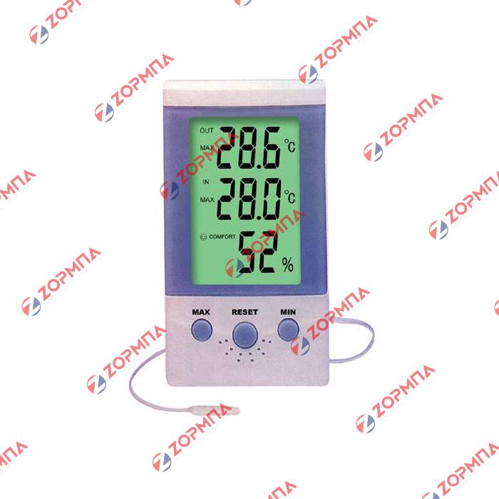 Μεγάλη οθόνη LCD. Ένδειξη θερμοκρασίας δύο θέσεων, υγρασίας ενός θέσεων και ώρας ταυτόχρονα. Λειτουργία ρολογιού, οθόνη Comfort. Τρία είδη τοποθέτησης.Μέγεθος προϊόντος: 115×64×19mmΜέγεθος οθόνης: 63×43mm